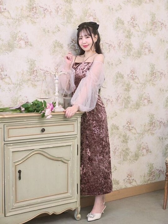 ・Tulle Sleeve Velour Dress