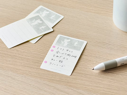 『ムーミン谷の冬』の代表的なシーンの挿絵をプリントした、特別デザインの『貼ってはがせるTo Doシール』です。ノートに貼って書き込むだけで、タスク管理を容易にすることができます。裏面全体に再はくり可能なのりが塗ってあるシールタイプなので、ひらひらすることなくぴったりと貼れて、使用後はきれいにはがすことができます。薄いグレーのチェックボックスや10mm間隔に設けたリスト欄はタスクを見やすく書き込めます。コンパクトで扱いやすい名刺サイズで、1枚ごとに「はくり紙」がついているため、そのまま手帳のポケットやスマートフォンケースに挟み込んで持ち運ぶこともできます。角に丸みをつけているので、使用時にはがれにくく、角が傷むことも防ぎます。本製品は2柄展開です。