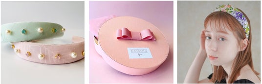 KARAKU by meは、国産素材を使用し一点一点手仕事で製作しているヘアアクセサリーブランドです。ブランド名のKARAKUは嘉楽=「喜び楽しむ」という禅語から名づけており、自らを喜ばせ楽しませることのできる大人の女性を現しました。「伝統文化とリアルウエアの融合」をテーマにデザインしている着物生地とビジューを掛け合わせた、アーティスティックでサステナブルなカチューシャは海外からも買い付けが入るなどブランドの代表的シリーズです。
