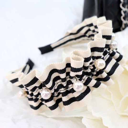 Frills Ribbon×Perl Headband STRIPE ¥16,500(税込)