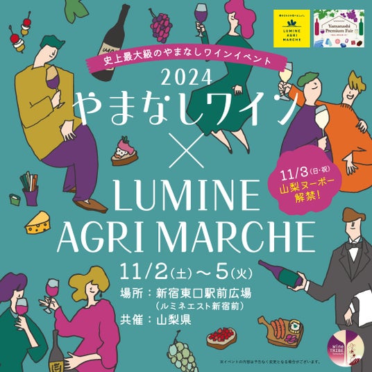 株式会社ルミネ(本社:東京都渋谷区、代表取締役社長:表輝幸)は、第4弾となる「やまなしワイン×LUMINE AGRI MARCHE 2024」を11月2日(土)から11月5日(火)までの4日間開催いたします。イベントには、やまなしワイン総勢約70ワイナリー、約200銘柄が参加し、取扱いワイナリー数史上最大級※1のやまなしワインイベントとなっています。