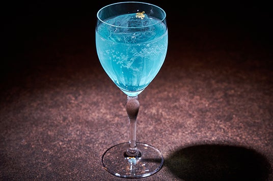 鮮やかな青色のリキュール“ヒプノティック”を使用して、世界最古の宝石の一つである「トルコ石」の、美しく鮮やかなターコイズブルーを表現しました。トロピカルフルーツとオレンジの爽やかな酸味と甘みのバランスがよく、女性にもおすすめなカクテルです。