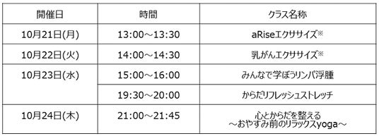 本イベントは、「大阪国際がんセンター認定 がん専門運動指導士※2」が担当し、専門的な知識と技術を基にがんを経験される方に寄り添いながら実施します。また、スタジオプログラムのオンライン配信サービス「RENAISSANCE Online LivestreamR(以下「ルネサンス オンライン ライブストリーム」)」内で実施することで、ご自宅やお出かけ先など、お好きな場所からご参加いただくことができます。
