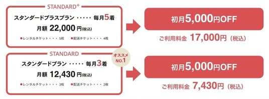 ※アイテムのレンタル料・往復の送料・クリーニング代込の料金プランです。