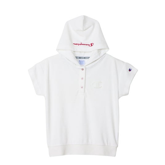 環境に配慮して生産されたサステナィブルなアメリカ綿74%と、リサイクルポリエステル26%の肌触りの良いパイル素材を使用したフーデッドポロシャツです。抗菌防臭、UVカット機能を備えています。ドロップショルダーのシルエットで裾はリブ仕様。胸にはCロゴをサガラ刺繍で、フードにはChampion(チャンピオン)ロゴを刺繍しています。https://www.hanesbrandsinc.jp/champion_sports/g/gCW-ZG305-020-M/