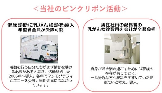 また、当社オリジナルのピンクリボンハンドクリームの収益金の一部を関連団体に寄付しており、今後もイベント参加や当社活動の発信等、一人でも多くの方の検診受診に繋がるよう活動を続けていきます。