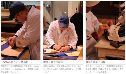 店舗に職人が在中しており、自社製品に限らず他社製品であっても直接相談ができることから、お客様の意図を汲み取った的確な「リサイズ・リメイク・お直し」をすることができます。