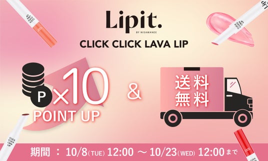 株式会社日本機能性コスメ研究所( https://www.cosmelabo.shop/ ) は、タイNo.1*インフルエンサープロデュースのリップ専門ブランド『Lipit.(リップイット)』の日本初上陸記念イベントを、2024年10月9日(水)に開催いたしました。上陸を記念して、公式通販サイト「JFラボコスメ」にて、溶岩(ラバ)のようにとろける美容液リップ「Lipit. クリッククリック ラバリップ」が送料無料&ポイント10倍となるキャンペーンを、10月23日(水)12時まで実施いたします。