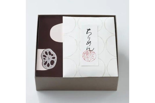 蓮粉から生まれる独特のとろりとした口あたりと、和三盆のやわらかな甘みが楽しめる蓮もちと、ちりめん山椒、福久梅鰯、冬菇椎茸の詰め合わせ。