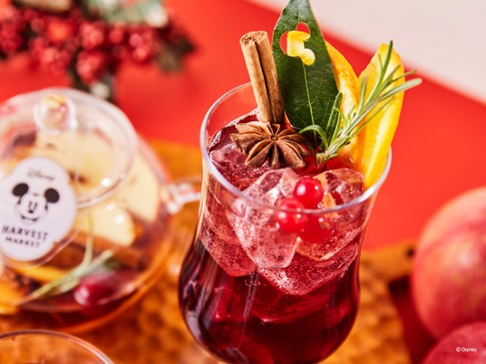 スパイス香る葡萄ミックスジュース<Mickey>シナモンで香りづけした赤ぶどうの微炭酸ジュースに、オレンジとスターアニスを合わせて香りをたのしむオリジナルジュースに仕上げました。まるでクリスマスツリーのような見た目も楽しいクリスマス限定ドリンクです。