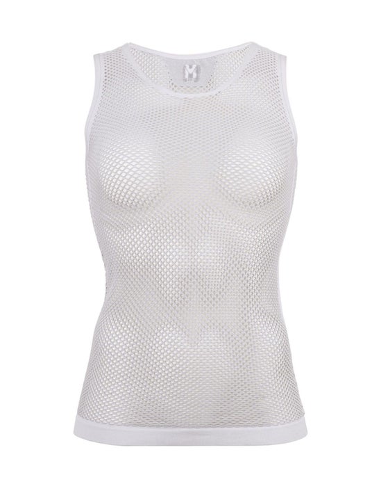 その特徴は、生地の「厚み」と大きな「網目」にあります。汗は、メッシュの繊維を通り、重ね着した上のウェアへと吸い上げられ拡散されます。