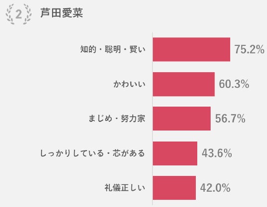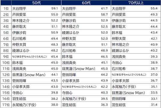 60代と70代以上で3位。孫にしたい理由1位は「かわいい」。2位「話したら楽しそう」、3位「明るい」、4位には「才能・技術がある」が入った。自由記述には、朝の連続ドラマ出演のコメントが寄せられた。演技力とキャラクターの魅力がランキングを押し上げた。