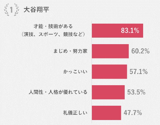 1位大谷翔平、2位芦田愛菜、3位伊藤沙莉でした。上位には、スポーツ・将棋・芸能の世界で活躍する日本の若者が並びます。ほぼ予想通りの結果となりました。