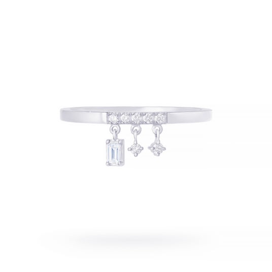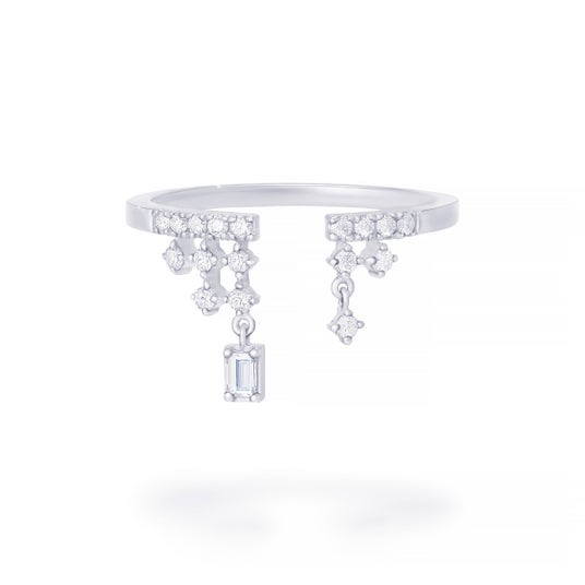 また、ダイヤモンドが繊細に揺れ、手元に気品を添える「シャンデリア スウェイ リング」。存在感のあるバゲットカットダイヤモンドが動きに合わせて瑞々しい輝きを放つオープンリングは、優美でシックな佇まい。「シャンデリア スウェイ プチ リング」は、ミニマルで軽やかなつけ心地。フレキシブルに揺れるダイヤモンドがさりげなく煌めき、手元にモダンなエレガンスを生み出します。