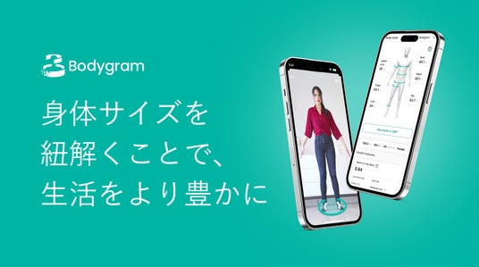 BodygramはAI(人工知能)の学習機能を駆使し身体サイズを推定する先進技術です。年齢・身長・体重・性別を入力し、服を着たままスマートフォンやカメラ付きデバイスで正面と側面の2枚の写真を撮影するだけで被写体の体型を自動で検出し、腹囲・肩幅・手足の長さなど最大で全身35ヶ所の推定計測が可能になります。Bodygramでの計測はISO 8559規格に厳格に準拠しており、これまでBtoB事業において制服やユニフォーム、百貨店といったアパレルをはじめ、寝具やヘルスケア、ビューティーの領域へ技術提供・実用化を果たして参りました。今後もフィットネス、ウェルネスといった様々な分野での活用と展開を計画しています。
