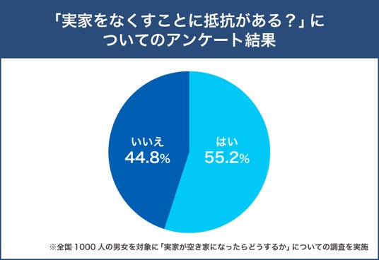 53.2%の人が実家を「相続したくない」と答えつつも、55.2%の人は実家をなくすことに「抵抗がある」と回答しています。