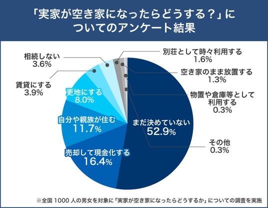 1位の「まだ決めていない」は全体の52.9%と、半数以上が実家をどうするか考えていないとわかります。