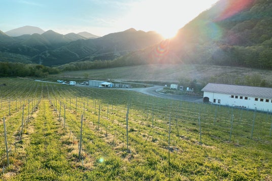 了美ヴィンヤード&ワイナリーは、宮城県黒川郡大和町吉田地区にあるなだらかな丘の上に2017年にオープン。赤崩山のふもとに位置する牧草地採取の跡地を利用して、2016年からぶどう畑に定植を開始。2017年には醸造所を整備して自社醸造を開始、2020年にレストラン「了美 wine & dine」と宿泊棟「Retreat了美七ツ森」をオープンしました。晴れた日には七ツ森の山々や遠く広がる仙台平野まで見渡せる眺望、そして船形山系と泉ヶ岳が交差する山の稜線には四季折々の表情を一年中楽しんでいただけます。仙台から車で1時間弱程で、まるで異国を思わせる自然豊かな風景が広がっているのが魅力です。現在、日本ワインを40,000本製造しています。
