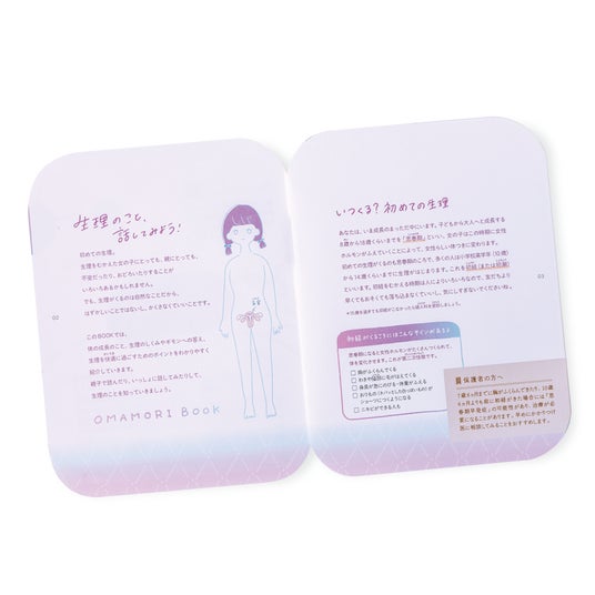 さらに、産婦人科医監修の下でイラスト付きで生理についてまとめた、「おまもりブック」がセットになった商品なども展開しています。初めての生理は親にとっても子供にとっても不安なもの。初潮を迎える前に親子で生理の話をするきっかけになるよう、製作しました。読み終わった後もいつかのためのおまもりとしてお持ちいただける商品となりご好評をいただいています。