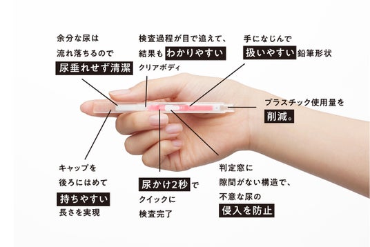 本シリーズの製品は判定の正確さや使いやすさといった検査薬のスタンダードな機能に加えて、半透明素材の一部に鏡面加工を施した「Smart Stick」と名付けた、新しい形の検査スティックで使用者が検査過程を見えるようにしました。