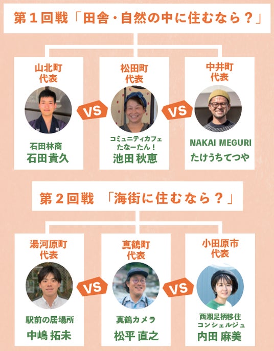 会場にブースを設置し、西湘足柄移住コンシェルジュ(下記)や市町の移住担当者への相談を 受け付けます。また、「西湘足柄」地元自慢決定戦(イ参照)の参加者と交流できる場を設けま