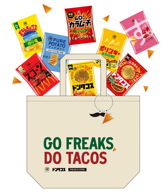 発売30周年を迎えた陽気で楽しい“ドンタコス”をデザインに落とし込んだコラボアイテムや湖池屋のスナックを詰め込んだ「GO FREAKS, DO TACOS バッグ」がもらえる3つのキャンペーンを開催