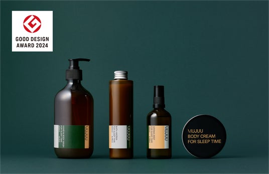 「MUJUU」は、五感の中で最もダイレクトに脳へと影響すると言われる“香り”に着目し、まるで森で眠るようなイメージで作られたオリジナルの香りを調合。ハンド&ボディソープ、バスアロマ、ボディクリーム、アロマミストの4商品を展開することで、一日のおわりに今日も頑張った自分を、香りで労るという“夜のルーティン”を実現しました。