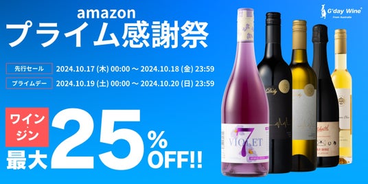 オーストラリアのワイン・ジンを専門に輸入販売するブランド『G’day Wine(R)』は、2024年10月17日(木)~ 10月20日(日)に開催される「Amazonプライム感謝祭先行セール」と「Amazonプライム感謝祭」にて、ギフトに最適なオーストラリアワインやクラフトジンをいつもよりお手頃な価格で販売します。