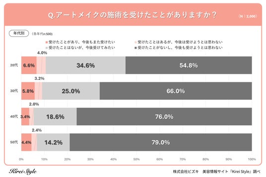 今回の調査では、アートメイクの施術を「受けたことがある」という方は8.0%に留まる結果になりましたが、その注目度の高さは年々高まっているようです。アートメイクは刺青や美容整形などとは異なり、永久的ではなく時間の経過とともに色が薄くなるため、トレンドの変化や好みの変化に対応しやすいのが特徴です。メイク時間を短縮したい、メイクオフの場面でも素顔に自信を持ちたい、などとお考えの方は、リスクなどはしっかりと把握したうえでアートメイクを検討してみるのもよいかもしれません。