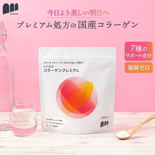 今回18品目となる『ミナカラ コラーゲンプレミアム』は、従来のコラーゲンパウダーにありがちな「飲み物への溶けにくさ」「溶かす際にダマになってしまう…」などの改善に努め、飲み物に溶けやすい設計を実現しました。