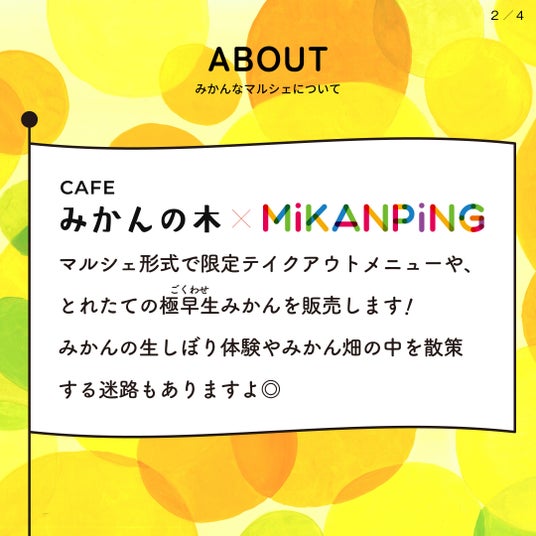 今回は、「みかんなマルシェ」イベントとの同時開催となります。
