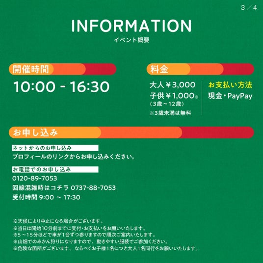 ※当イベント開催期間内において発生した一切の事故やけがの責任を負いかねます。