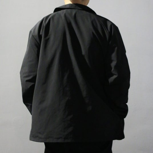 ポケットの形状も左右非対称で、ファスナーを片側のみのレイアウトにすることで着用しやすく、着る人にもやさしいデザインを目指しています。 素材は、撥水ポリエステル。張りのある素材と裏地を採用し、ライトアウターとして仕立て上げました。