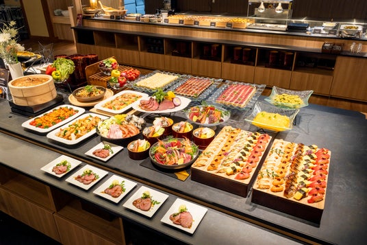 前述の「丸岡城」の紅葉を楽しむなら「湯快リゾートプレミアム 青雲閣」がおすすめです。2024年3月21日にリニューアルOPENした本宿は、あわら温泉を一望できる高台に佇む癒しの湯宿です。緑に囲まれた庭園露天風呂をはじめ、種類豊富なお風呂をご用意しています。また、レストランではご当地米のハナエチゼンや焼き鯖寿司、これからの季節にもぴったりの打ち豆汁といったご当地メニューも取り揃えたバイキングをご賞味いただけます。