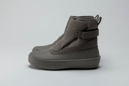 南極観測隊をルーツに持つウィンターシューズ製造のノウハウをデイリーユースに。着脱が簡単なアッパー構造と、軽量で防水性のある立体成型EVAのソールを組み合わせた仕様。靴底に氷上で優れた防滑性を発揮するガラス繊維配合ラバーを搭載したミニマルなブーツタイプ。