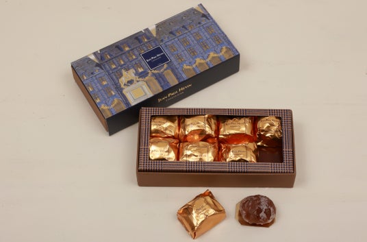 ヴォージュ広場をイメージした季節限定スリーブ付き。季節限定の「マロン グラッセ」6個と、ノエル限定ショコラを含むボンボン ショコラ20個の詰合せ。