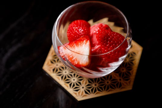 贅沢にいちごを使用したソルベが、コースの中盤を軽やかに彩ります。乳成分を使用せず、すっきりとした後味にこだわったオリジナルのソルベは、滑らかな口溶けと、いちごの果汁を感じるジューシーな味わいが特徴です。お口の中をさっぱりとさせることで、後に続くスイーツへの期待感を一層高めます。