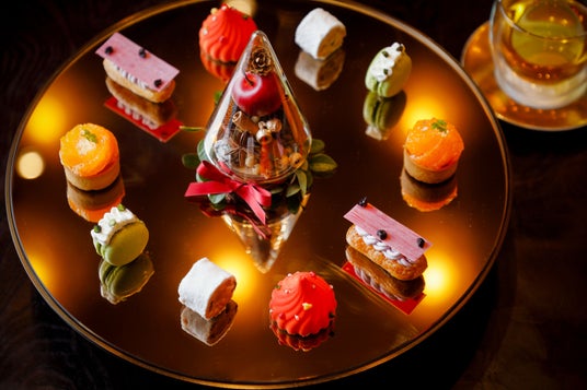 黄金色の柔らかな明かりと暖炉の揺らめく炎が織りなす穏やかな空間「ザ リビングルーム」。フェスティブシーズンにはツリーのモミの木、薪をはじめとした様々な温かみのあるクリスマス装飾で彩られた居心地の良いクリスマスシーンでみなさまをお迎えいたします。人気のアフタヌーンティーは、冬の美食材を贅沢に使用した満足感のあるセイボリーや、ディテールにこだわり、ひとつひとつ丁寧に仕上げた繊細なスイーツの数々をラインナップし、クリスマス気分をより一層盛り上げる内容に仕立てています。それぞれのセイボリー・スイーツには、厳選したティーペアリングが提供され、より豊かな味わいをお楽しみいただけます。アンティークのような輝きをまとった艶やかな真鍮の器で魅せるセイボリーアソートや、柔らかな黄金色の光を受けた幻想的なミラースタンドに並べられた愛らしいスイーツのアソートなど、他にない美しいプレゼンテーションにもこだわりました。ご自宅のリビングにいるかのようにくつろぎながら、贅沢な午後のひとときをお楽しみください。
