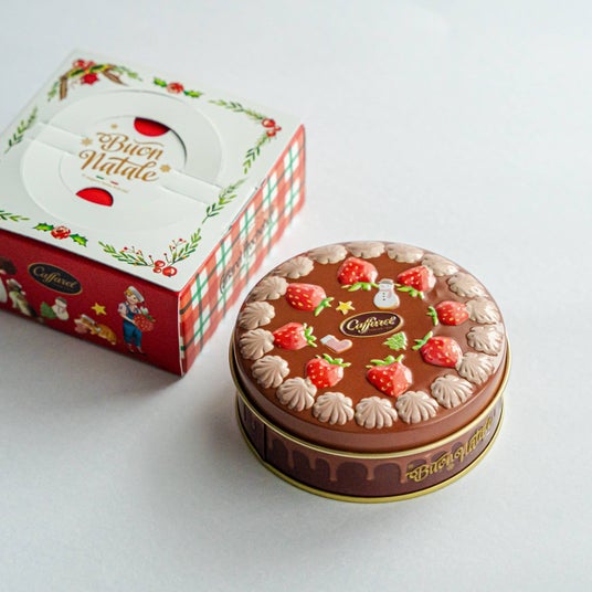 内容:出てきた瞬間、おもわず歓声があがるほどかわいらしいクリスマスケーキをイメージした缶が、今年はチョコレートケーキになって登場!