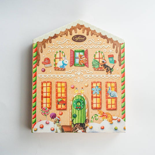 内容:今年初登場のお菓子の家型のカレンダー。お菓子の家にはかわいいうさぎやリス、猫達がクリスマスパーティを祝いに集まっている賑やかなシーンが描かれています。中にはカファレルを代表するジャンドゥーヤをはじめ、抹茶フレーバージャンドゥーヤのリス、サンタやキノコのホイルチョコレートなど、人気のチョコレートが全25粒アソートされています。クリスマス気分を盛り上げてくれるおススメのカレンダーです。