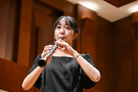 また、開演前のプレトークでは、本学大学文書館が所蔵する、100年前の演奏で実際に使用されたオーボエを九大フィルの学生が実際に演奏し、来場者の注目を集めました。