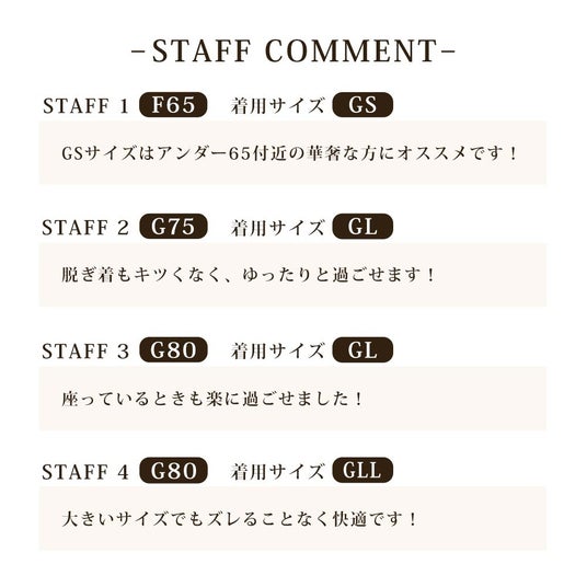 サイズ:GS・GM・GL・GLL(グラマラス専用サイズ)