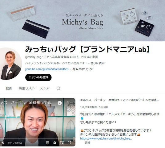 代表取締役の満田は、ハイブランドバッグ研究家として、ブランドバッグの情報や、自分に合ったバッグの選び方について YouTube チャンネルで配信しています。