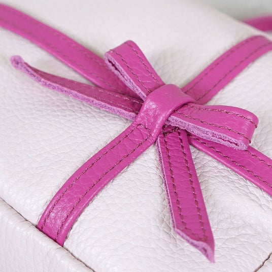【ピンクリボンの日】ビッグリボン ミニポシェット&ポーチ ショルダー付きSサイズ 1858-ri素材:(表地) 牛革 – イタリアンシュリンク型押しレザー 、(裏地) ポリエステル100%