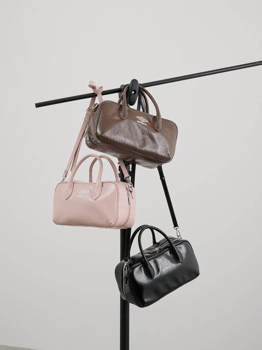 ぷっくりとしたシルバーの「umbro」ロゴがポイントの横長シルエット。