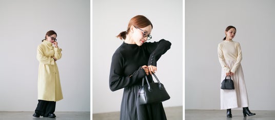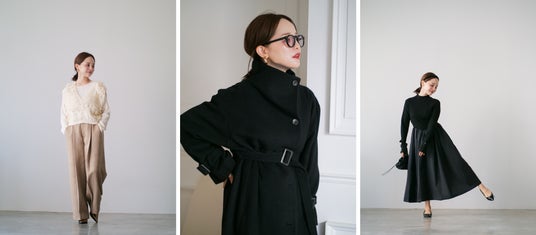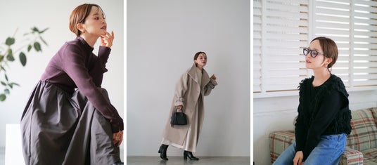 今回は、トレンド感のあるレイヤードコーデを楽しめるニットベストから、女性らしく華やさのあるワンピースとコートの3型をご用意しました。田中亜希子さんらしいテイストにCOHINAならではのスタイルアップを取り入れた、冬のファッションをお楽しみください。