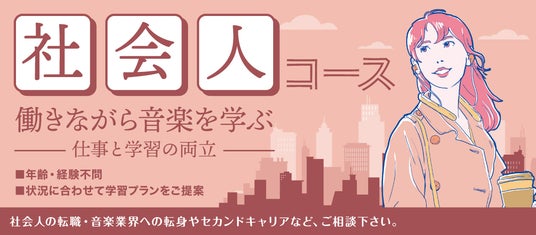 「社会人コース」へは会社を退職されて入学を決心する方、時間の余裕ができてからのご入学など、様々な理由で入学されています。私たちは音楽を学びたいという意志を最大に尊重し、年齢や音楽経験は一切問いません。
