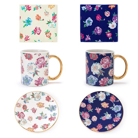また細部を重厚感のあるゴールドで仕上げて、高級感をプラスしたマグカップとプレートのほか、自宅用やギフトにもおすすめのハンドタオルもご用意しました。