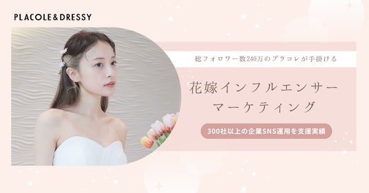 「PLACOLE & DRESSY」ブランドを展開する冒険社プラコレ(本社:神奈川県鎌倉市、代表取締役CEO:武藤功樹)は、総フォロワー数240万人を誇るインフルエンサーマーケティングを活用し、F1層に響く「花嫁インフルエンサー」を駆使した新たなマーケティングプランをスタートします。