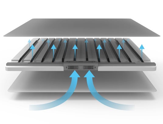 内部は8層構造になっており、温度・湿度をコントロールするサーキュレーションシステムに加え、表面には通気性・吸湿性を兼ね備えた肌触りの良い耐摩耗性素材を採用。